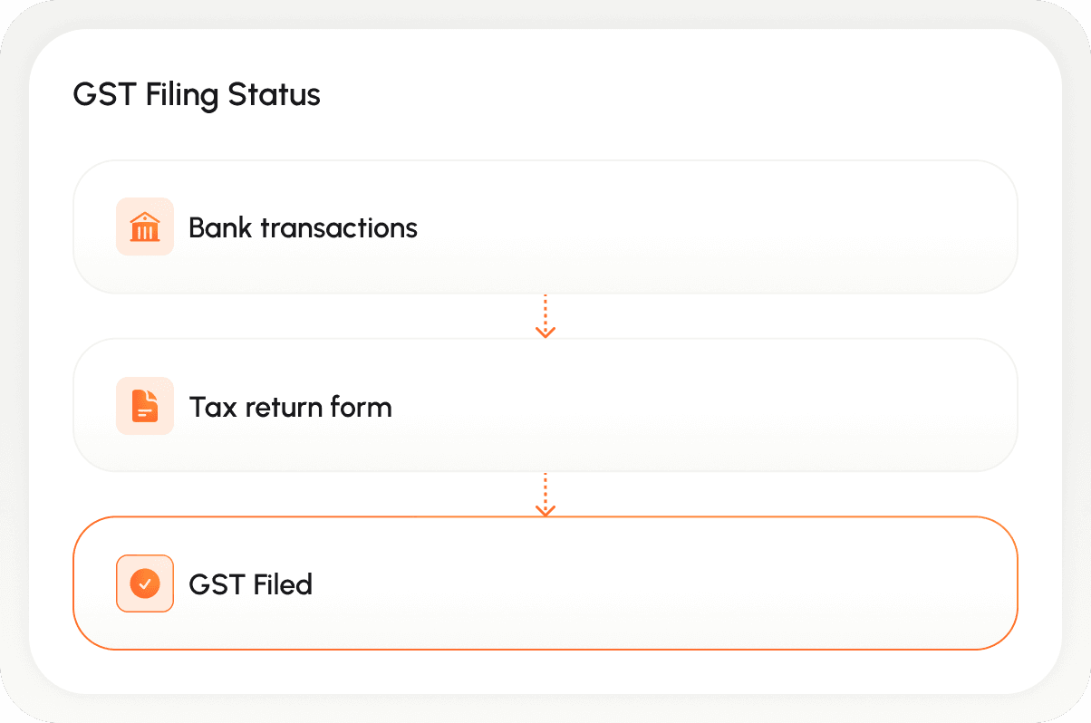 We use your live bank data to calculate your Input Tax Credits (ITCs) accurately. We prepare and file your returns on time, every time, and send you a simple notification of what’s owed. No more guessing, no more late fees.